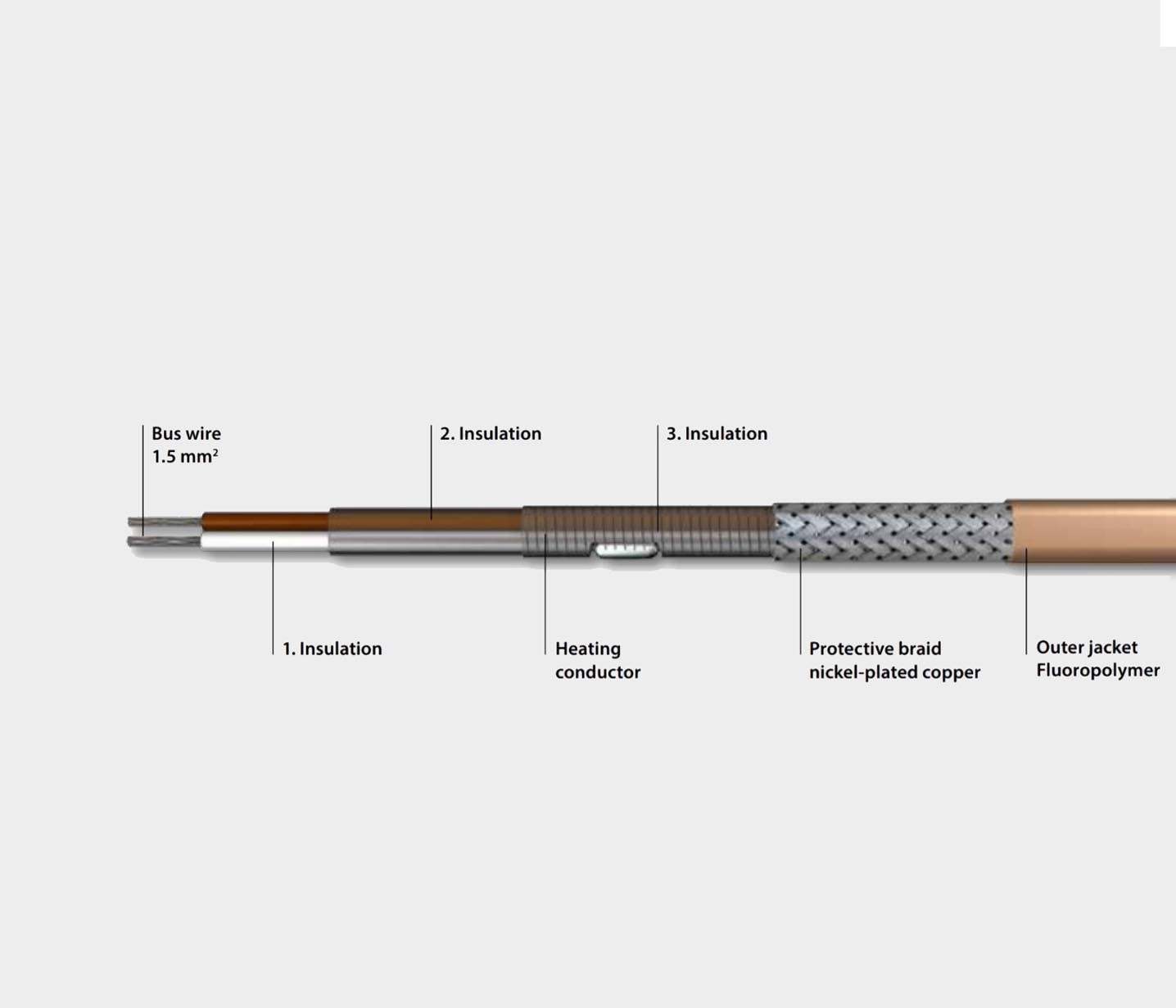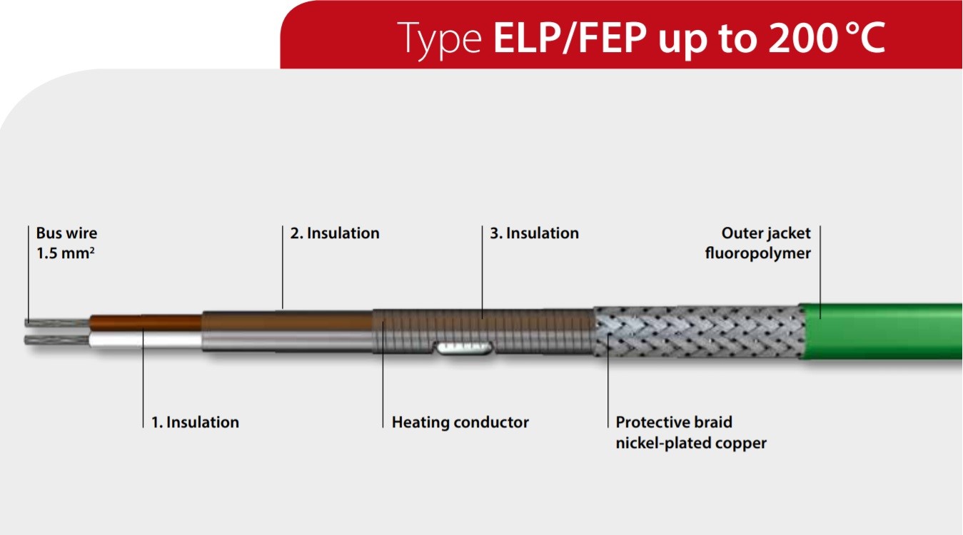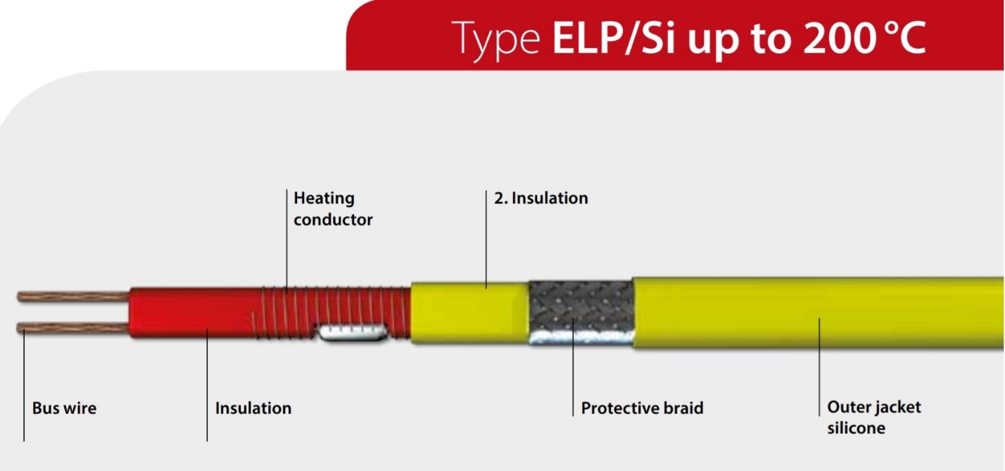 Paralleelsed konstantse võimsusega küttekaablid (näiteks ELP/Si) koosnevad kahest toitejuhist, mis on põimitud esimesse isolatsiooni. Ümber mähitud takistustraat, mis on ümbritsetud teise isolatsiooniga. Vastav kaitsepunutis ja väliskest tagavad maksimaalse ohutuse. Näiteks: põhilised kasutuskohad on toiduainetööstus erinevate torude, anumate või ventiilide soojendamiseks külmumise vältimiseks või temperatuuri säilitamiseks. Vajalik nimivõimsus arvutatakse erinevate spetsifikatsioonide alusel, nagu toitepinge, minimaalne ja maksimaalne ümbritseva õhu temperatuur ning säilitustemperatuur. Võtke meiega julgelt ühendust!